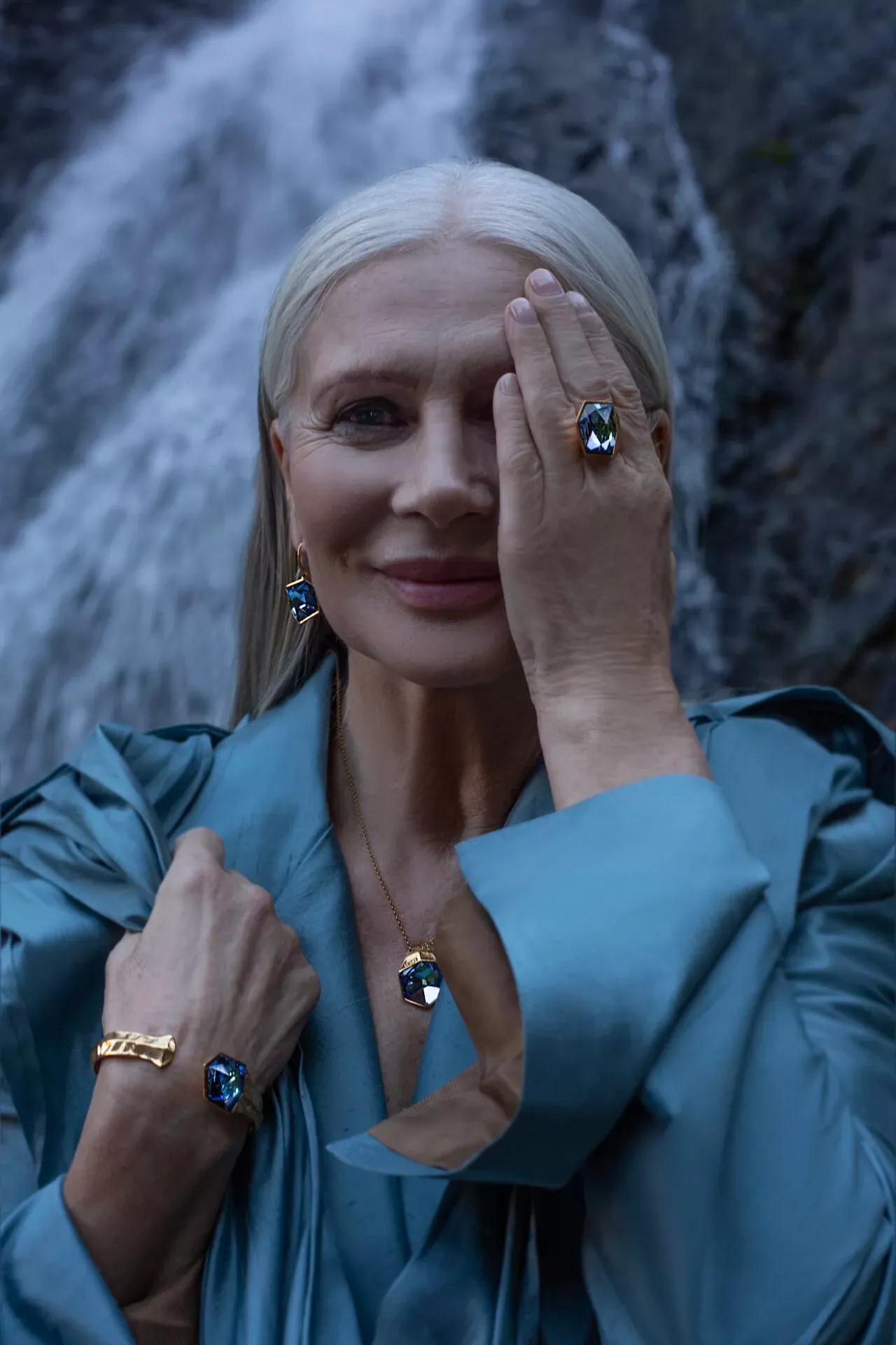 Zjawisko niesamowitej zorzy polarnej przywołuje użyty kryształ mieniąc się na wiele barw. Nowoczesny design srebrnej oprawy kamienia to geometryczna forma symbolicznie przypominająca kosmos. Niepowtarzalny charakter bransolety uzyskany poprzez miejscowo odciśnięte linie papilarne to nasz unikalny sposób wykończenia powłoki srebra. Otwarta forma bransolety to doskonały wybór dla miłośniczek indywidualnych ozdób biżuteryjnych. Idealną kompozycję tworzy z pierścionkiem z tej samej kolekcji biżuterii.