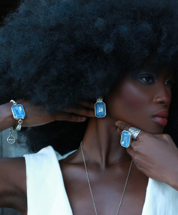 W kolekcji „Wyspa Skarbów” użyliśmy kryształy, które kolorem i szlifem płynnie łączą się z naszą fakturą srebra.