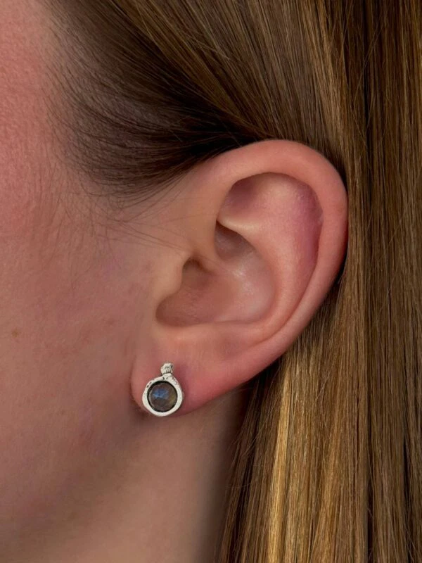 Subtelne kolczyki na sztyft, wykonane z myślą o codziennej wygodzie, zostały dopełnione energetycznym kolorem naturalnych kamieni. Inspirowane radością, cieszą oko wyrafinowanym wykończeniem faktury srebra.