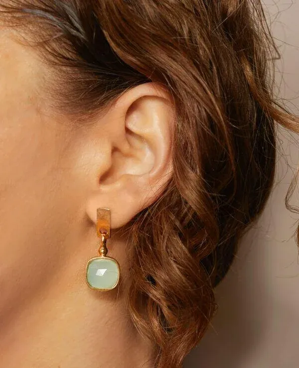 Unikatowe kolczyki na sztyft zostały wykonane ręcznie. Srebrne blaszki z wiszącym naturalnymi kamieniami w prostej oprawie tworzą energetyczną, kobiecą kompozycję. Proste wykończenie srebra podkreśla głębię koloru naturalnego kamienia. Artystyczne kolczyki pasują do każdej stylizacji.