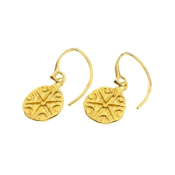 Artystyczne, wiszące kolczyki zostały zaprojektowane i wykonane w naszej autorskiej pracowni biżuterii Motyle w Sopocie. Niezwykły design kolczyków tworzy połączenie surowego i etnicznego symbolu ochronnego wygrawerowanego w srebrze.