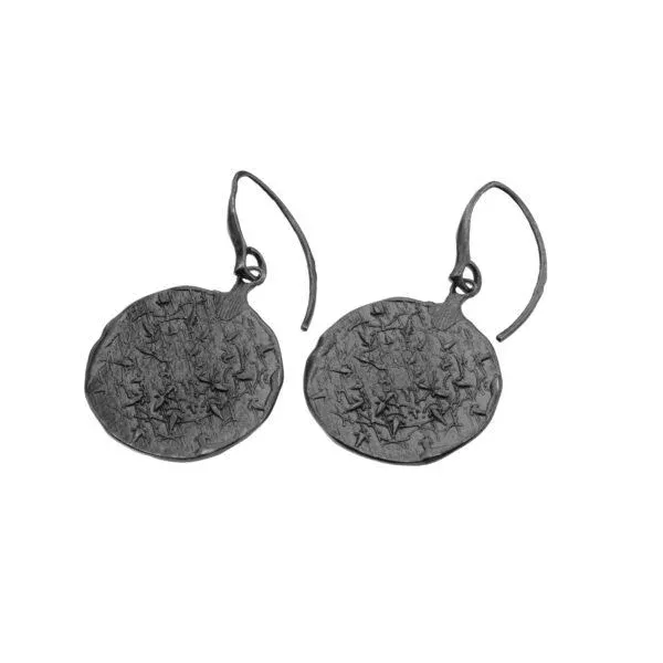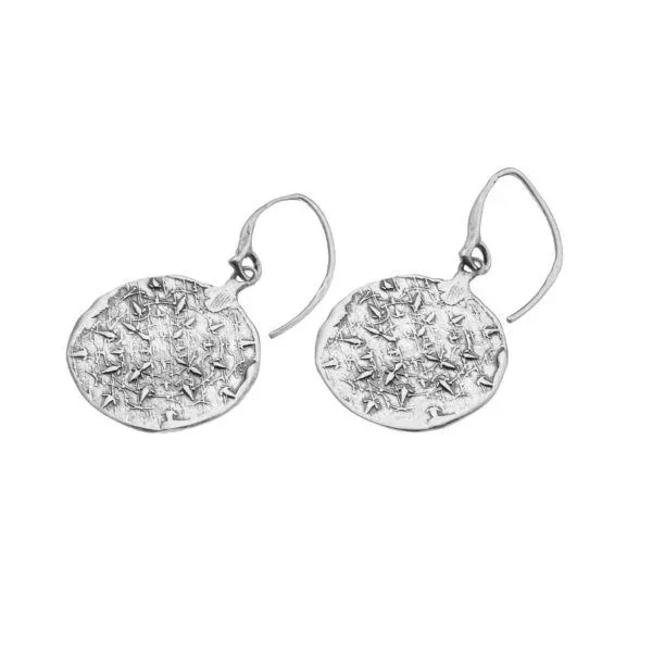 Artystyczne srebrne kolczyki w formie medalionów to ręcznie wykonana kopia prastarej mandali- symbolu harmonii, dobrobytu i szczęścia. Wiszące kolczyki zostały zaprojektowane i wykonane w sopockiej pracowni biżuterii Motyle. Wykute w srebrze mandale to wyjątkowe amulety tworzące etniczny design w codziennych stylizacjach.