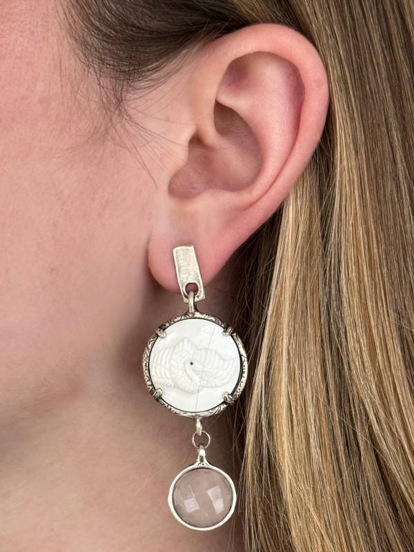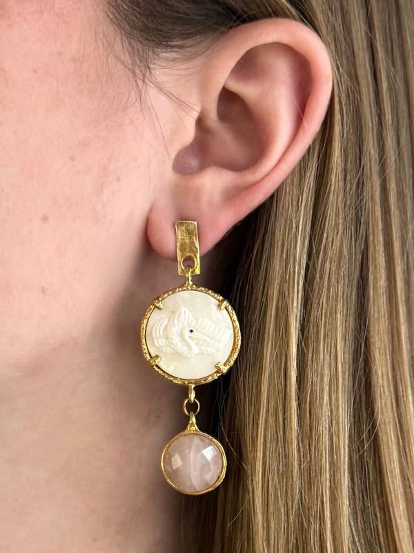 Długie kolczyki, w których zaklęta jest energia natury i kobiecej intuicji. Różowy kwarc, uznawany za kamień serca, współgra z ręcznie rzeźbionym elementem poroża, tworząc duet, który celebruje połączenie siły i subtelności. Dzięki zapięciu na sztyft są wygodne w noszeniu, a ich elegancka forma sprawia, że będą doskonałym wyborem zarówno na co dzień, jak i na wyjątkowe okazje. Ponadto wydłużona forma kolczyków wysmukla szyję. To biżuteria, która noszona blisko ciała, przypomina o wewnętrznej harmonii i odrodzeniu.