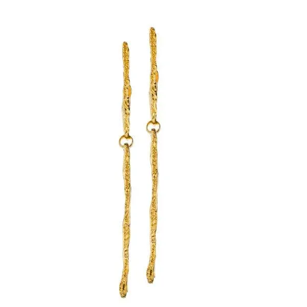 Długie, smukłe kolczyki o długości 7,5 cm składają się z dwóch ogniw o różnych rozmiarach, połączonych w subtelną całość. Ich geometryczna konstrukcja nadaje stylizacji lekkości i współczesnej elegancji. Idealne dla kobiet ceniących prostotę i unikalne detale.