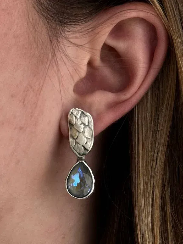 Głównym elementem ozdobnym jest kryształ Swarovskiego o wymiarach 1 × 1,5 cm, który delikatnie mieni się w świetle, dodając kolczykom blasku i głębi. Jego połysk symbolizuje czystość, harmonię i duchowe oczyszczenie – wartości, które inspirowały powstanie tej wyjątkowej kolekcji. Całkowita długość kolczyków wynosi 3,5 cm, co czyni je doskonałym wyborem zarówno na co dzień, jak i na wyjątkowe okazje.