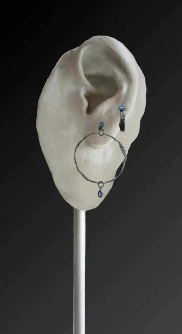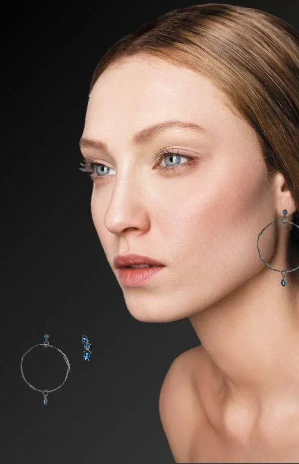 Odkryj piękno i wyjątkowość kolczyków z kolekcji Magma, które są nie tylko biżuterią, ale prawdziwym dziełem sztuki. Ręcznie wykonane w autorskiej pracowni Motyle, te artystyczne kolczyki w kształcie koła o średnicy 4,5 cm zachwycają każdym detalem. Kolczyki wykonane ze srebra najwyższej próby oraz ozdobione dwoma nanokryształami w kolorze topaz london blue, które umieszczono na ruchomych elementach, doskonale wpisują się w codzienne stylizacje