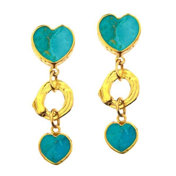 Odkryj subtelną moc kolczyków z kolekcji Shambhala, które łączą w sobie mistykę tybetańskiej biżuterii i współczesną elegancję. Dwa serca połączone finezyjnym ogniwem, tworzą kompozycję pełną lekkości i symbolicznej głębi. W centrum każdego serca umieszczono turkus, przypominający o wewnętrznym spokoju i szczęściu.