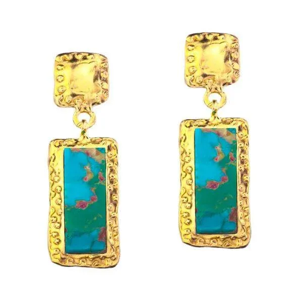 Kolczyki Shambhala z naturalnym turkusem to subtelna interpretacja tybetańskiej symboliki w nowoczesnej formie. Niebieskozielone kamienie z nieregularnymi inkluzjami zostały oprawione w srebro o surowej fakturze, która podkreśla ich organiczne piękno. Każdy detal przywodzi na myśl ręczne rzemiosło dawnych mistrzów – prostota kształtu i głębia barwy tworzą spójną, harmonijną całość.