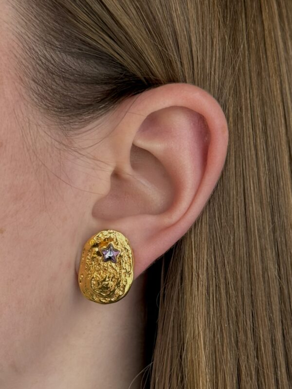 W naszej ręcznie robionej biżuterii odwzorowaliśmy charakterystyczne pociągnięcia pędzlem które nadają ruch i dynamikę. Na fakturze srebra widoczne są szybkie , kręte ruchy które tworzą wirujące formy i sugestywnie odzwierciedlają ruch gwiazd na nocnym niebie. W kolekcji użyliśmy również najwyżej jakości kryształów, żywych odcieni żółci, niebieskiego i białego. Razem tworzące wrażenie pulsującej energii.