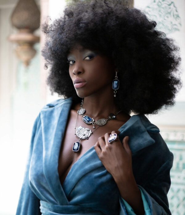 W naszej ręcznie robionej biżuterii odwzorowaliśmy charakterystyczne pociągnięcia pędzlem które nadają ruch i dynamikę. Na fakturze srebra widoczne są szybkie , kręte ruchy które tworzą wirujące formy i sugestywnie odzwierciedlają ruch gwiazd na nocnym niebie. W kolekcji użyliśmy również najwyżej jakości kryształów, żywych odcieni żółci, niebieskiego i białego. Razem tworzące wrażenie pulsującej energii.