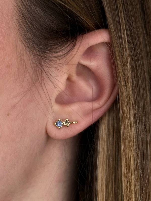 Te wyjątkowe kolczyki to jedyna taka para – ręcznie wykonane z dbałością o każdy detal. Ich baza została stworzona ze złota próby 585, a serce kompozycji stanowią naturalne szafiry o niezwykłych barwach.