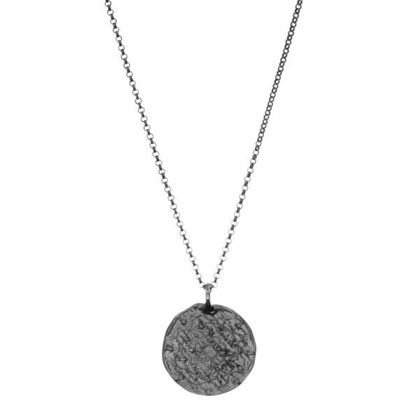 Artystyczny srebrny medalion to ręcznie wykonana kopia prastarej mandali- symbolu harmonii, dobrobytu i szczęścia. Dwustronny naszyjnik został zaprojektowany i wykonany w sopockiej pracowni biżuterii Motyle. Wykuta w srebrze mandala to wyjątkowy ponadczasowy amulet tworzący etniczny design w codziennych stylizacjach.