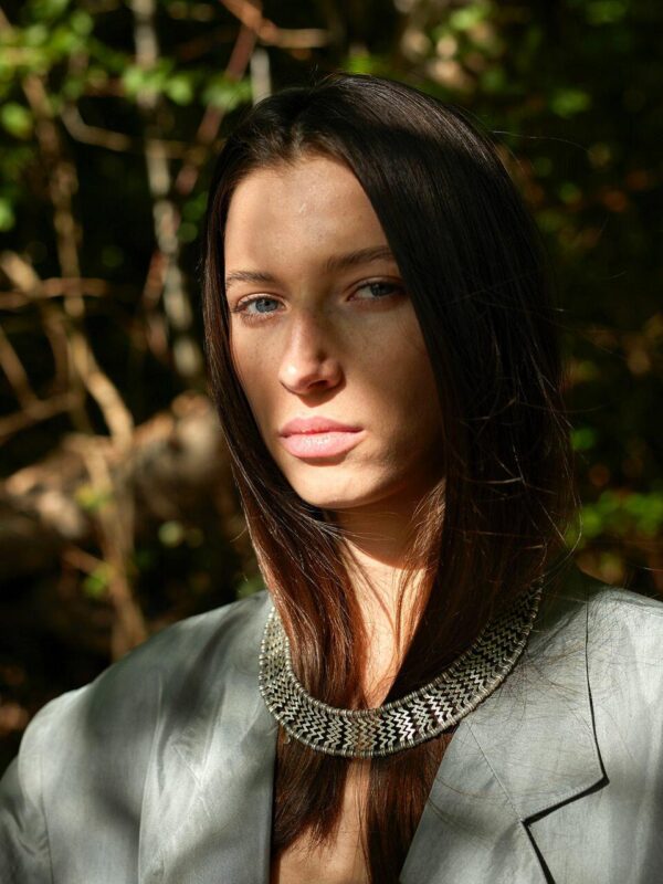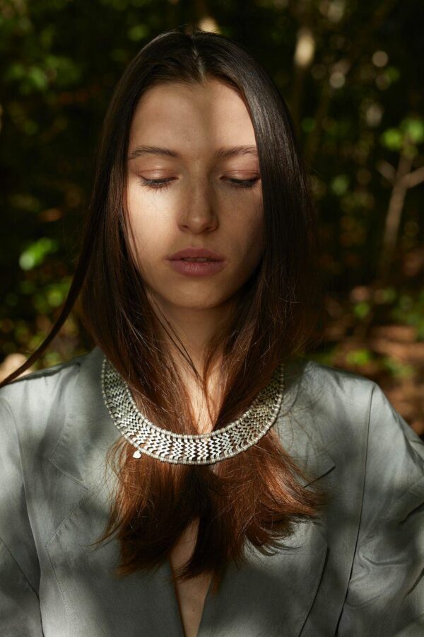 Osoba nosząca biżuterię z kolekcji Czarny Dąb tworzy z nią jedność, dodając do niej własną opowieść i emocje.