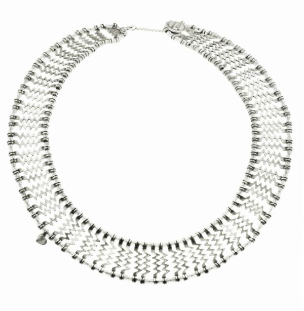 Artystyczny naszyjnik został zaprojektowany i wykonany w atelier Motyle w Sopocie z największą dbałością o każdy szczegół. Srebrny wisior to połączenie unikalnego etnicznego stylu wraz z pięknie połyskującymi, drobnymi labradorytami.