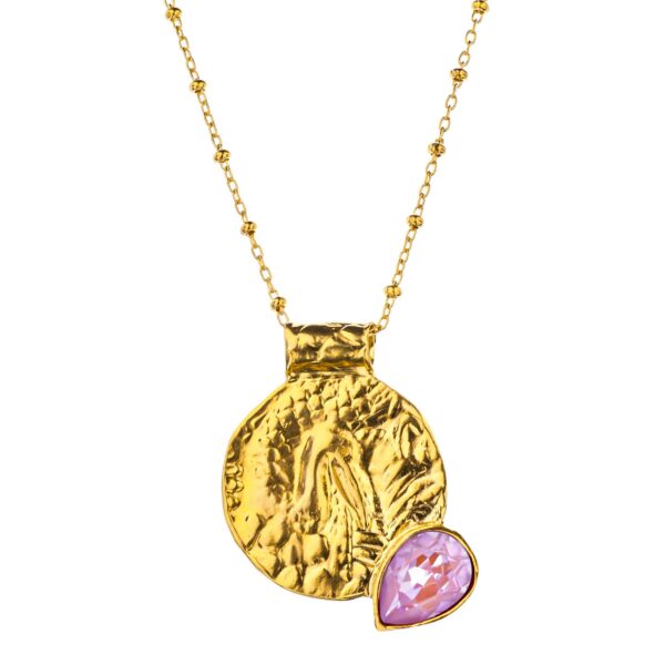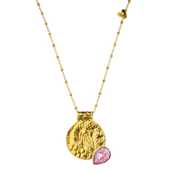 Naszyjnik z kolekcji „Biały Łabędź” to biżuteria inspirowana subtelnością i harmonią natury. Jego centralnym elementem jest zawieszka z wyjątkowym kryształem Swarovskiego o różowej barwie, który opalizuje na niebiesko, przypominając mglisty świt lub świetlistą poświatę. Symbolizuje on wewnętrzną równowagę, czułość i intuicję – wartości, które prowadzą nas przez życie w zgodzie z samym sobą.