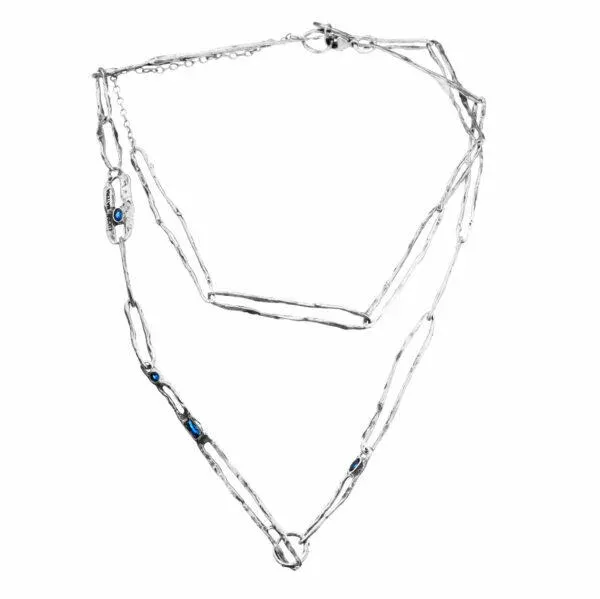 Zachwyć się pięknem nanokryształów w kolorze london blue topaz, które dodają blasku i elegancji każdej stylizacji. Naszyjnik ten to nie tylko biżuteria – to opowieść o magmie, ruchliwej materii, która tworzy nowe formy i przypomina o ciągłym procesie przemiany.