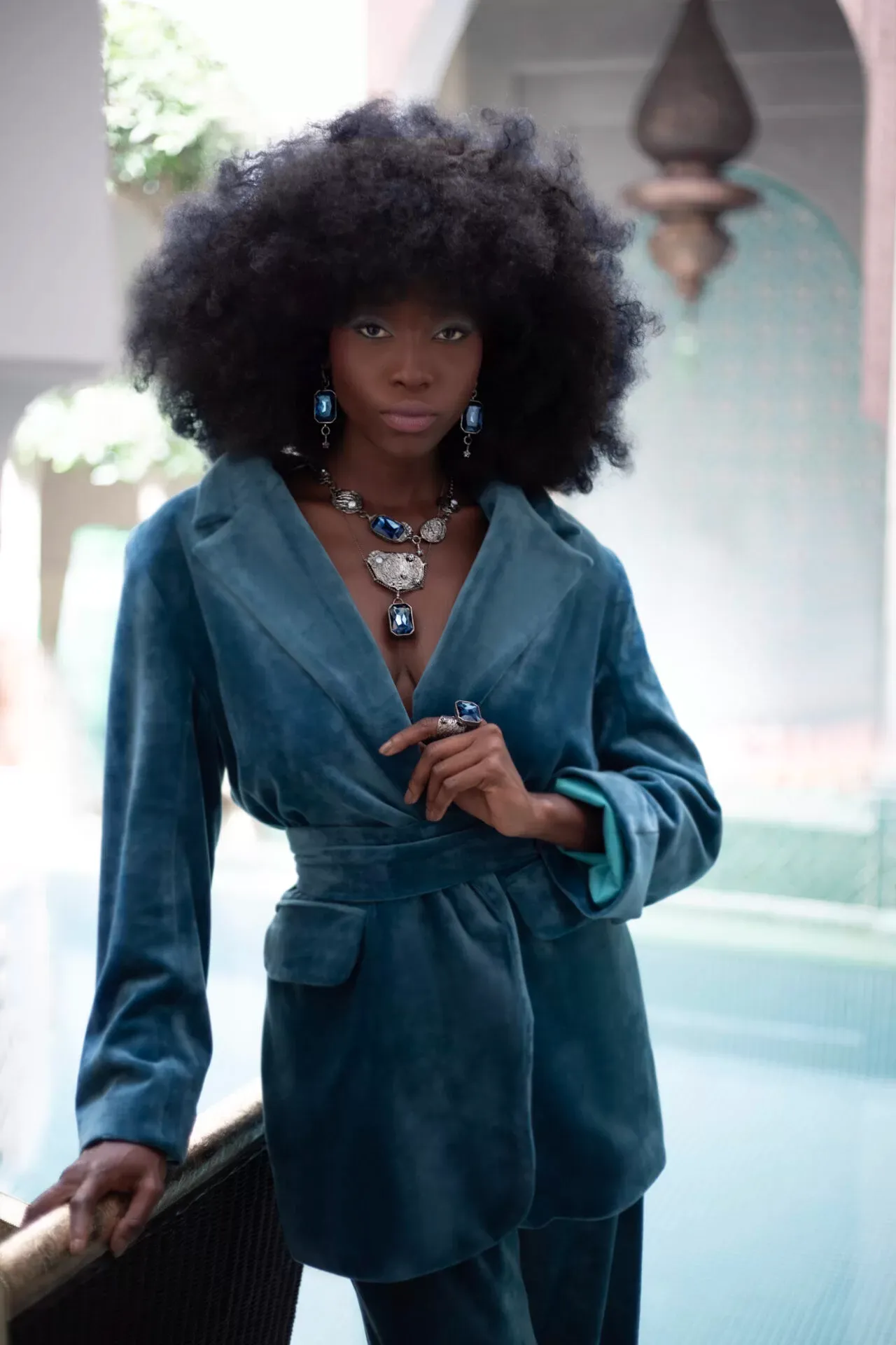 Dwustronna konstrukcja naszyjnika pozwala Ci cieszyć się jego pięknem na wiele sposobów. Imponujący, ciemnoniebieski kryształ na jednej stronie nadaje mu wyjątkowej elegancji, podczas gdy minimalistyczna, delikatna faktura srebra z subtelnymi gwiazdkowymi kryształami na drugiej stronie emanuje subtelnym, stylowym wdziękiem.