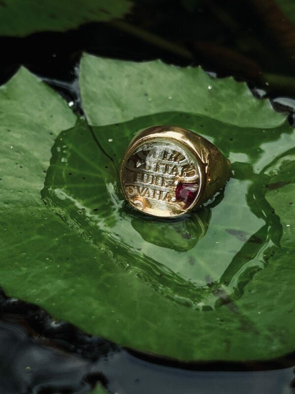 Artystyczny pierścionek został zaprojektowany i wykonany w naszej autorskiej pracowni biżuterii. Klasyczny, okrągły kształt pierścionka został przełamany nowym podejściem do osadzania kamieni. Idealnie czysty kryształ górski kryje pod sobą wygrawerowane słowa mantry: