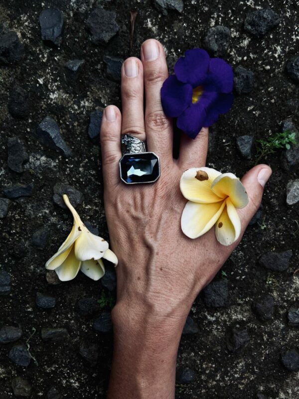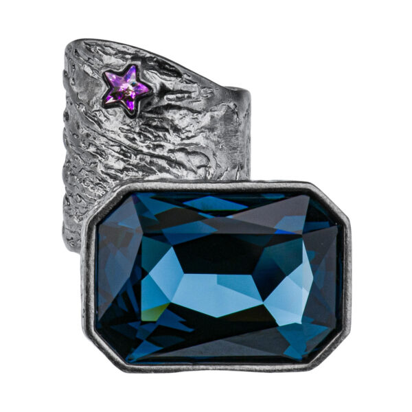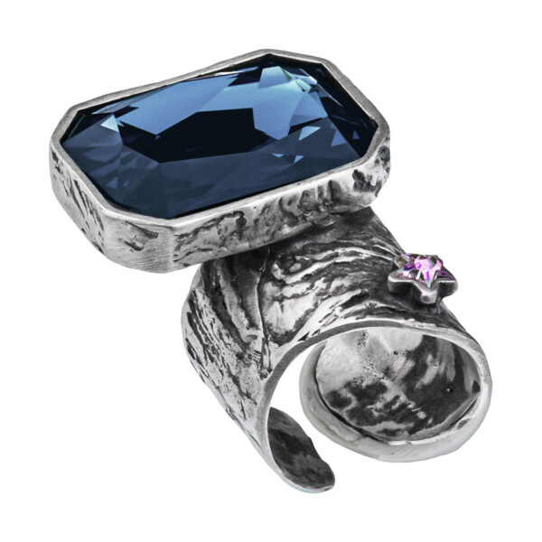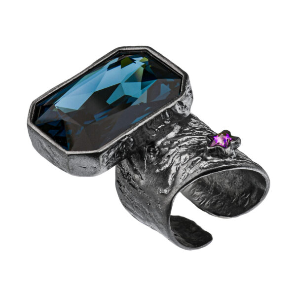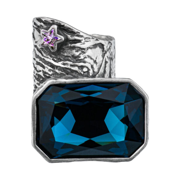 Niepowtarzalny pierścionek z kolekcji Vincent to prawdziwe dzieło sztuki jubilerskiej, które zachwyci każdego miłośnika biżuterii artystycznej. Inspirowany słynnym obrazem Vincenta Van Gogha „Gwiaździsta noc”, pierścionek zachwyca nieregularną, otwartą szyną oraz olśniewającymi kryształami. Duży ciemnoniebieski kryształ, a także mniejszy mieniący się na różne kolory kryształ w kształcie gwiazdki, nadają temu pierścionkowi magiczny, kosmiczny charakter. Widoczne na fakturze srebra dynamiczne, wirujące formy doskonale odzwierciedlają ruch gwiazd na nocnym niebie. Dostępny w wersji oksydowanej lub rodowanej, ten niezwykły pierścionek będzie wspaniałą ozdobą dłoni każdej osoby ceniącej piękno i unikalność. Nie przegap okazji, by stać się posiadaczem tego jubilerskiego arcydzieła!