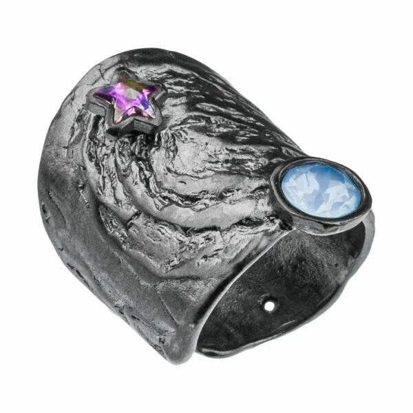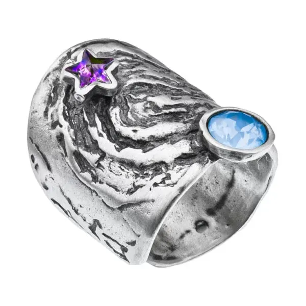 Odkryj magię nocy w niezwykłym pierścionku z kolekcji Vincent. Stworzony w sopockiej pracowni biżuterii artystycznej Motyle, ten wyjątkowy pierścionek to prawdziwe dzieło sztuki. Nieregularna szyna ozdobiona jest kryształem w kształcie gwiazdki, który mieni się różnymi barwami, niczym gwiazdy na nocnym niebie a dopełnieniem tego zjawiskowego wzoru jest drugi, błękitny kryształ w kształcie kółka. Pierścionek inspirowany jest słynnym obrazem Vincenta Van Gogha „Gwiaździsta noc”, a faktura srebra odzwierciedla dynamiczny ruch gwiazd, nadając pierścionkowi niezwykłą głębię i elegancję. Dostępny jest w dwóch stylowych wersjach – oksydowanego oraz rodowanego srebra. Pozwól się oczarować tą wyjątkową biżuterią i dołącz do grona wielbicieli sztuki Van Gogha.